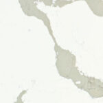 A creamy white backdrop graced with a veiny overlay of greys, earthy browns, and green undertones, extending in all directions like an organic web, crackling around fine fissures with a primordial energy that morphed into modern opulence.